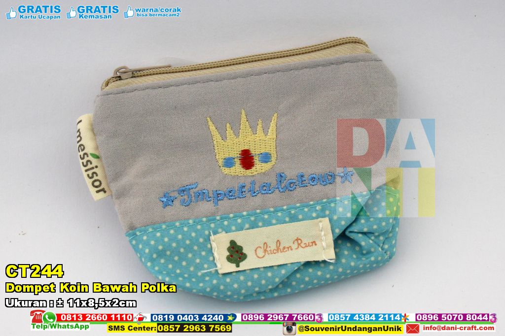 Harga Dompet Koin Bawah Polka harga grosir. Kodenya barang ini yaitu CT244. Produk ini menggunakan material Kanvas-Kain. Adapun dimensinya adalah kisaran 11×8,5x2cm