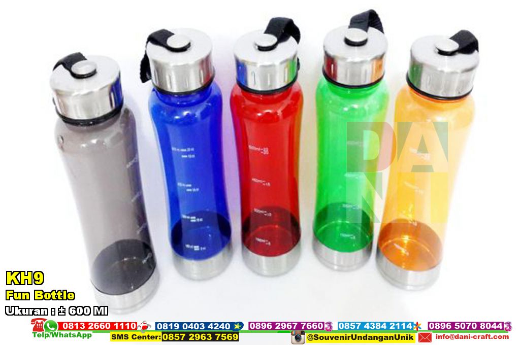Fun Bottle murah. Kodenya barang ini adalah KH9. Barang ini menggunakan bahan 201SS + AS. Adapun ukurannya adalah sekitar 600 Ml.