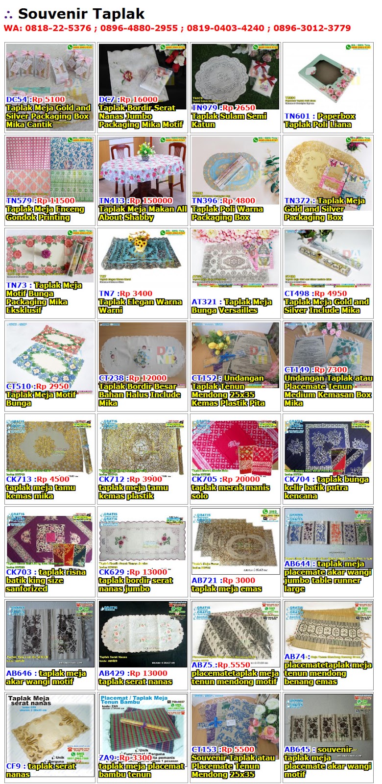 Berikut ini katalog harga souvenir pernikahan, undangan pernikahan dan aneka macam produk Dani-Craft yang dapat anda download secara gratis. Pada setiap katalog harga sudah terdapat foto dan harganya masing-masing. Jika anda menginginkan gambar yang lebih besar, anda bisa menghubungi customer service kami via WA sesuai dengan nomor yang dapat anda lihat pada bagian kanan halaman ini.