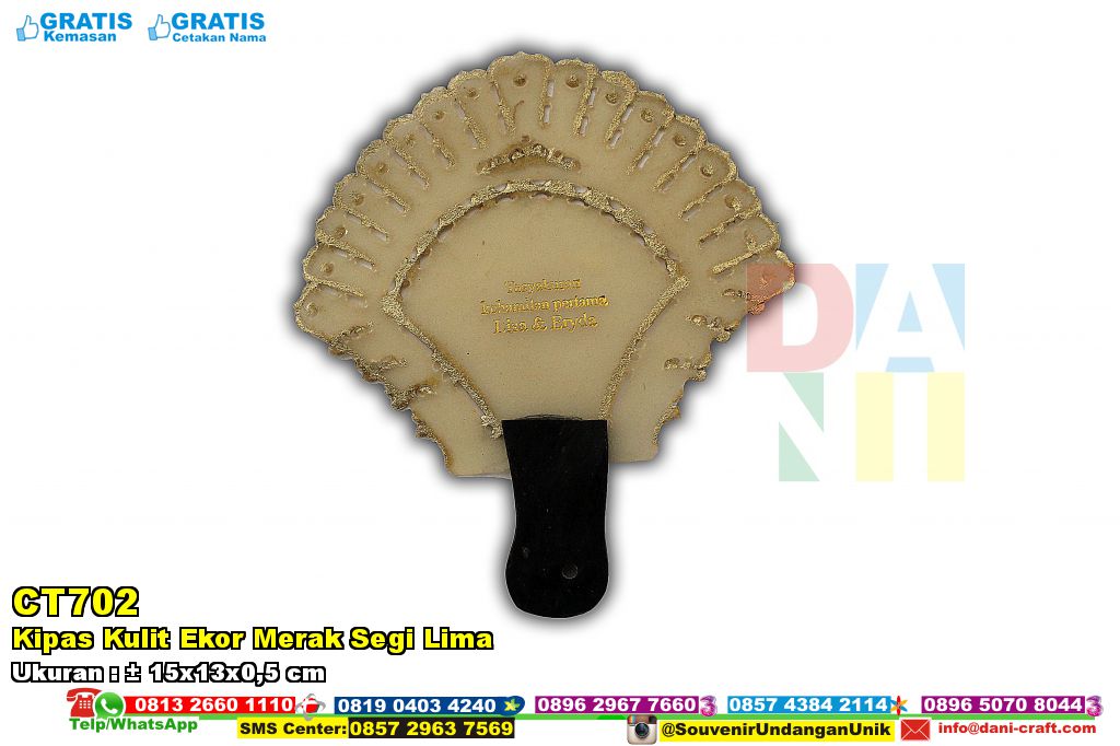 Kipas kulit ekor merak segi lima dengan kode ct702. seperti namanya, kipas kulit ekor merak segi lima ini dibuat menggunakan bahan kulit. kipas kulit ekor merak segi lima ini dibentuk menjadi bentuk segi lima. kipas kulit ekor merak segi lima ini berukuran kurang lebih 15x10x0. 5 cm. kipas kulit ekor merak segi lima ini pegangannya gagangnya terbuat dari plastik yang dibentuk sedemikian rupa hingga menjadi lebih menarik. kipas kulit ekor merak segi lima ini bisa anda jadikan souvenir pada acara pernikahan anda. kipas kulit ekor merak ini di desain hampir mirip dengan ekor merak. jika anda berminat, anda bisa memesan lewat online dengan menghubungi nomor 0813-2660-1110 atau anda bisa mengunjungi website kami di www. dai-craft. com dan atau anda juga bisa datang langsung ke jalan kasongan desa tirto kulon, kasihan, bantul, jogja. kami juga menyediakan berbagai macam souvenir pernikahan unik dan undangan pernikahan unik. souvenir pernikahan unik seperti kipas, tas, gelas, mangkuk, talenan, dompet dan undangan pernikahan unik seperti kipas undangan, tas undangan dan lain-lain. -- RizaSiswanto Putri
