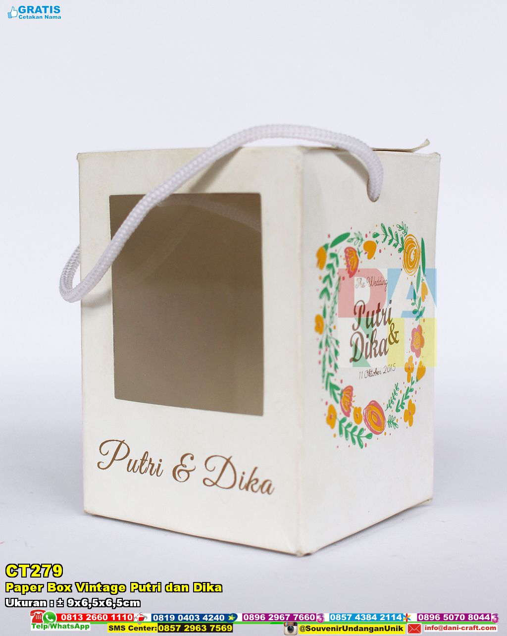 Vintage Putri Dan Dika harga grosir. Kode produk ini yaitu CT279. Produk ini memakai bahan Ivory-Mika. Adapun dimensinya adalah kisaran 9×6,5×6,5cm