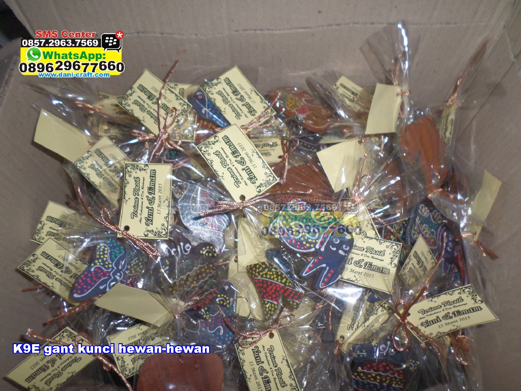 Sesuai dengan namanya, ini adalah souvenir berbentuk hewan untuk gantungan kunci. Souvenir ini menggunakan bahan utama kayu, sehingga souvenir ini masuuk dalam dua kategori sekaligus. Yakni jenis souvenir pernikahan gantungan kunci dan jenis souvenir pernikahan kayu. Mirip dengan souvenir alat musik, souvenir ini juga merupakan souvenir macam-macam. Maksudnya, ketika anda memesan souvenir dengan kode K9E ini, maka anda akan mendapatkan aneka macam jenis hewan dalam pesanan anda.