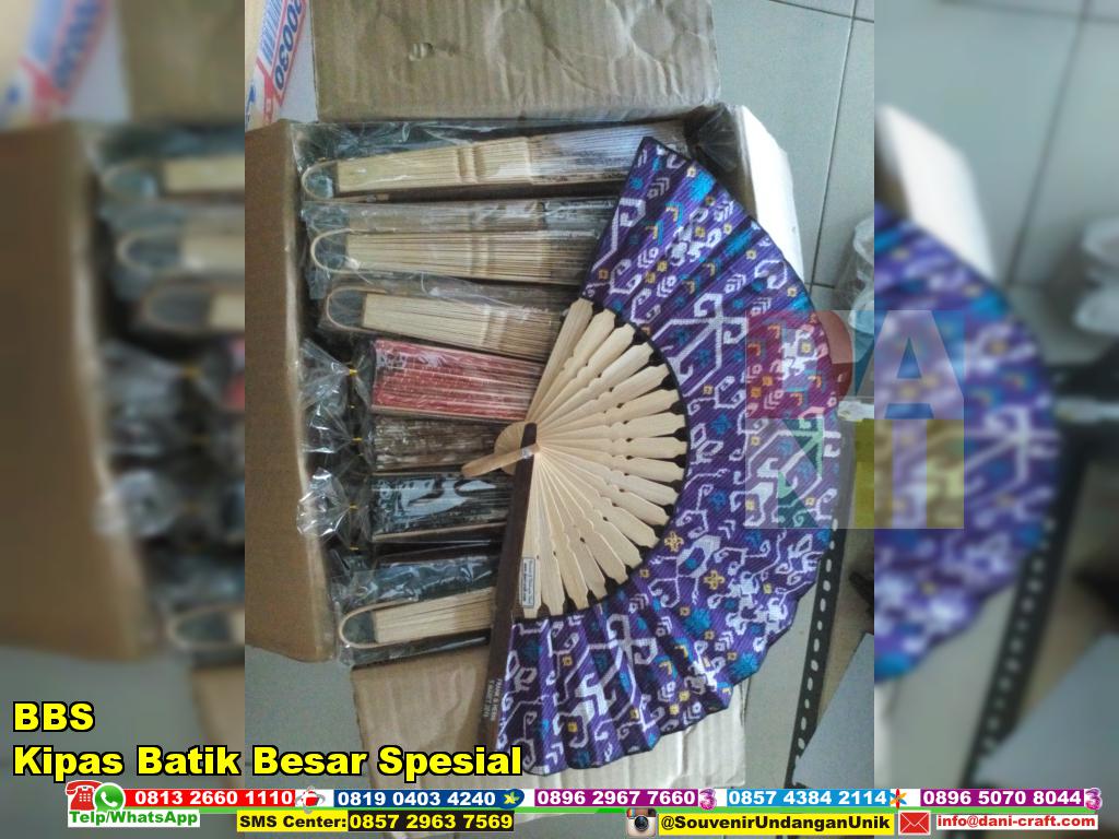 BBS adalah kode untuk souvenir kipas batik besar spesial. Souvenir ini mempunyai ukuran yang lebih besar dibandingkan souvenir kipas spesial sebelumnya yang berkode BSS. Jika anda telah lama mengikuti situs ini, anda tentu tahu tahu bahwa souvenir BSS mempunyai ukuran sekitar 38 cm dalam kondisi terentang. Untuk souvenir kipas BBS ini sendiri memiliki ukuran 42 cm dalam kondisi terentang.