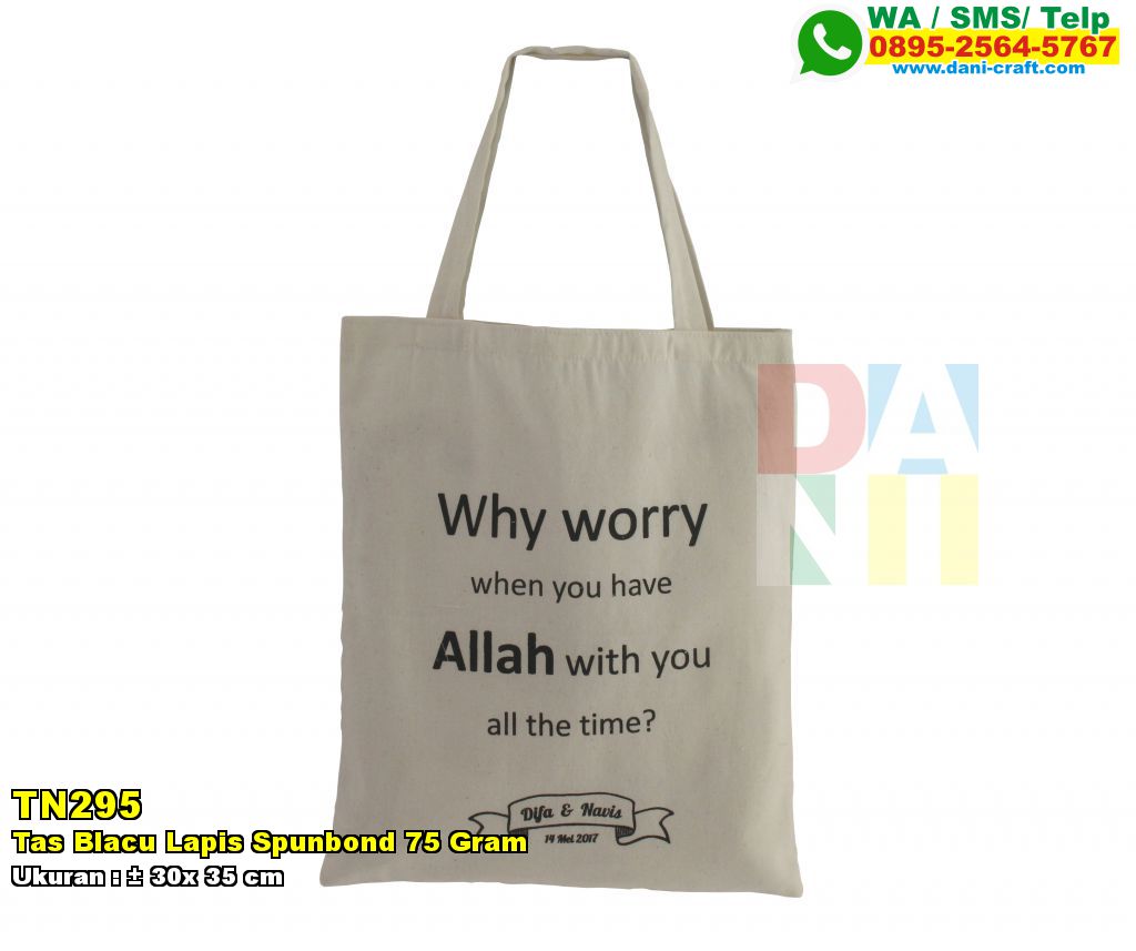 Jual Tas Blacu Lapis Spunbond 75 Gram harga grosir. Kodenya barang ini yaitu TN295. Barang ini menggunakan bahan Blacu dan spunbond. Mengenai dimensinya adalah sekitar 30x 35 cm