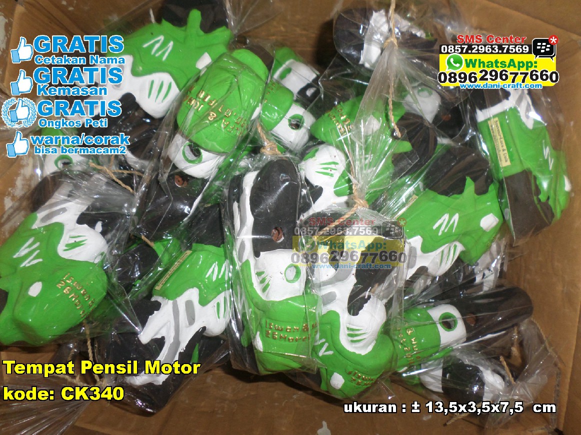 Masih bingung cari souvenir buat acara kalian disini aja Dani-Craft solusinya. menyadiakan berbagai macam souvenir yang anda cari, souvenir yang tidak mahal namun terjangkau, dan souvenir yang unik. nah, ini contohnya guys ada souvenir tempat penssil yang berbentuk motor pastinya sangat unik kan. souvenir ini terbuat dari bahan dasar taah liat yang di bentuk sehingga bisa menjadi bentuk trasportasi motor ini. ini sangat cocok sekali bagi anda yang memeliki hobi bermotor dan menyukai hal hal yang mengenai motor bisa untuk di jadikan souvenir di pernikahan anda dan pasangan atau bisa juga di gunakan sebagai tempat pensil untuk putra anda dan juga bisa di gunakan untuk souvenir ulang tahun anak anak nih. di sini jika anda sudah memesan dan membeli nya anda bisa mendapat kan beberapa fasilitas yang di tawarkan, seperti gratis kemasan, gratis cetakan nama, gratis ongkos peti, dan juga warna atau corak nya bisa bermacam macam. ayooo buruan order. . datang aja langsung ke Dani-Craft yang berada di Jalan Kasongan Dusun Tirto Kulon RT 04 Bantul Yogyakarta. . -- Anggi Melyana