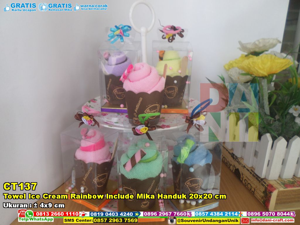 Toko Towel Ice Cream Rainbow Include Mika Handuk 20×20 Cm murah. Kodenya produk ini yaitu CT137. Barang ini menggunakan bahan Towel. Adapun ukurannya yaitu kisaran 4×9 cm.Untuk stok mohon WA CS Dani Craft ya kak 🙂