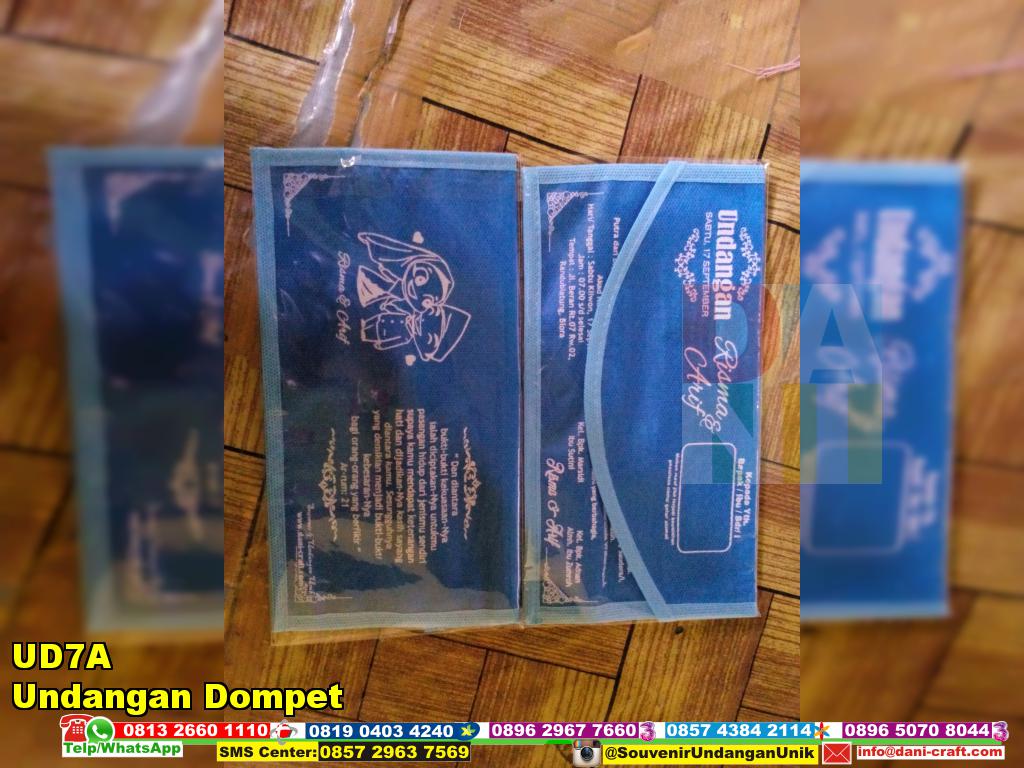 Ini adalah Undangan Dompet dengan kode UD7A. Undangan dompet ini merupakan salah satu jenis undangan pernikahan unik yang diproduksi oleh Dani-Craft. Dengan konsep dompet, undangan pernikahan yang harganya sangat ekonomis ini mempunyai nilai fungsi yang dekat dengan kehidupan sehari-hari. Selain bisa menghemat anggaran, kita juga bisa memberikan benda yang bisa digunakan berulang kali sesuai dengan konsep “reuse” (penggunaan ulang) yang ramah lingkungan. Apalagi jika dipikir-pikir, undangan pernikahan ini sebenarnya sudah merangkap sebagai sebuah souvenir pernikahan pula.