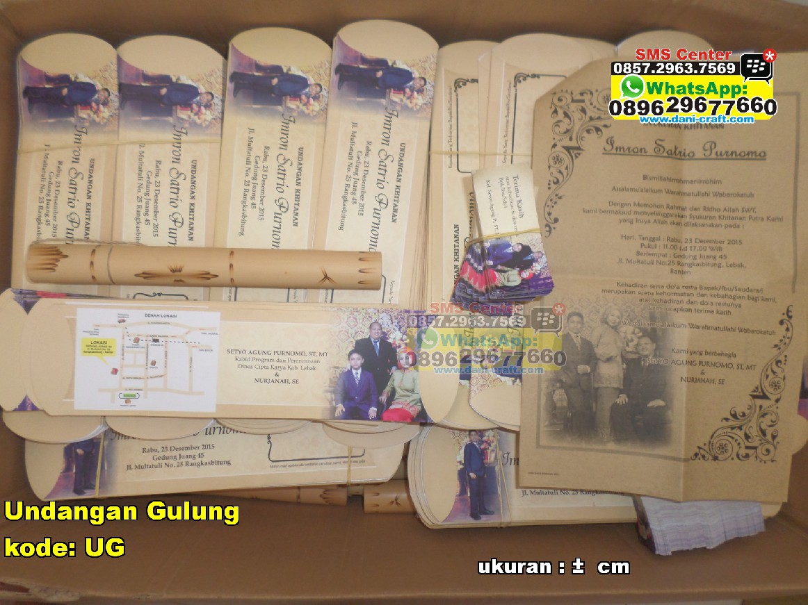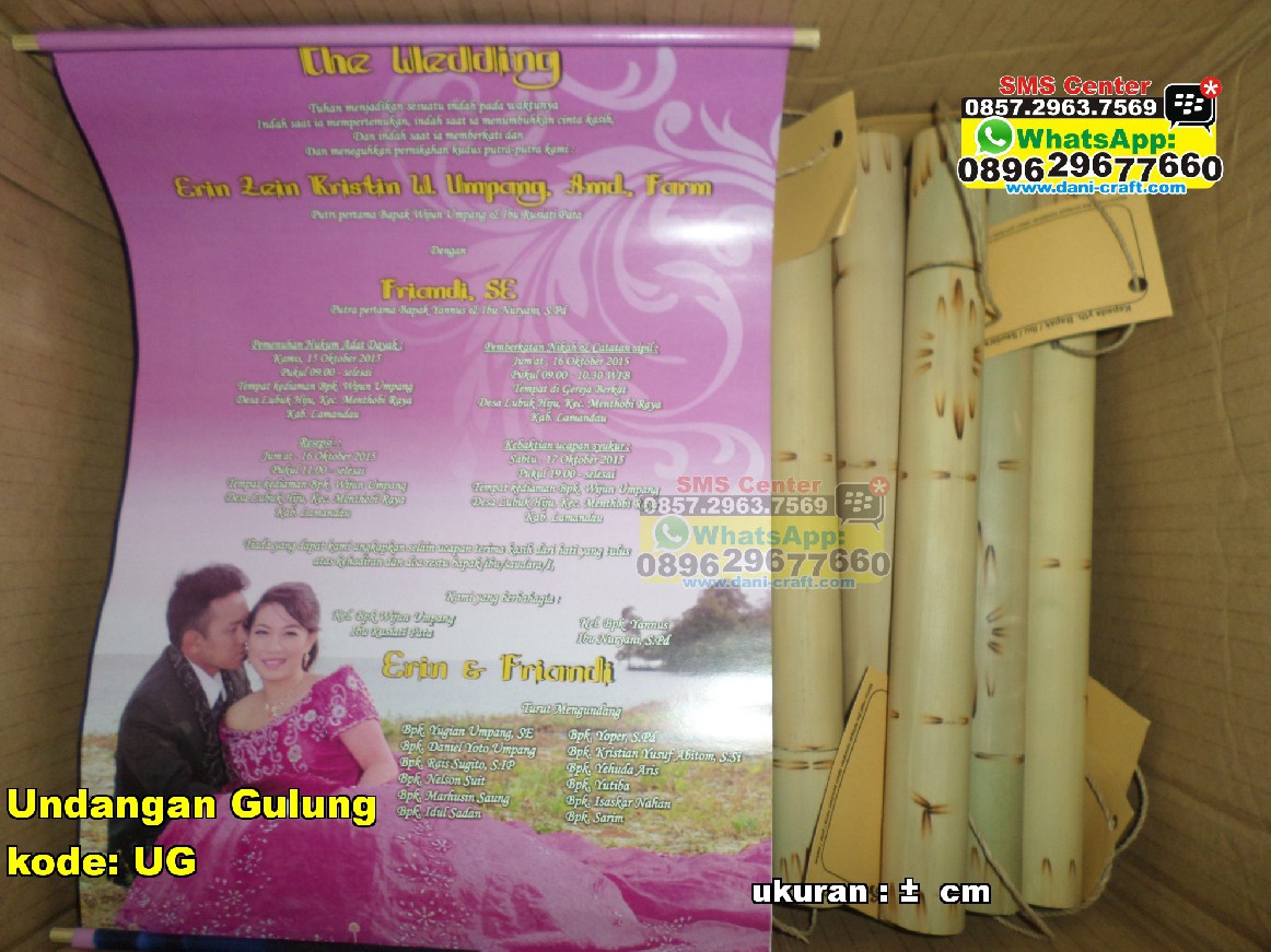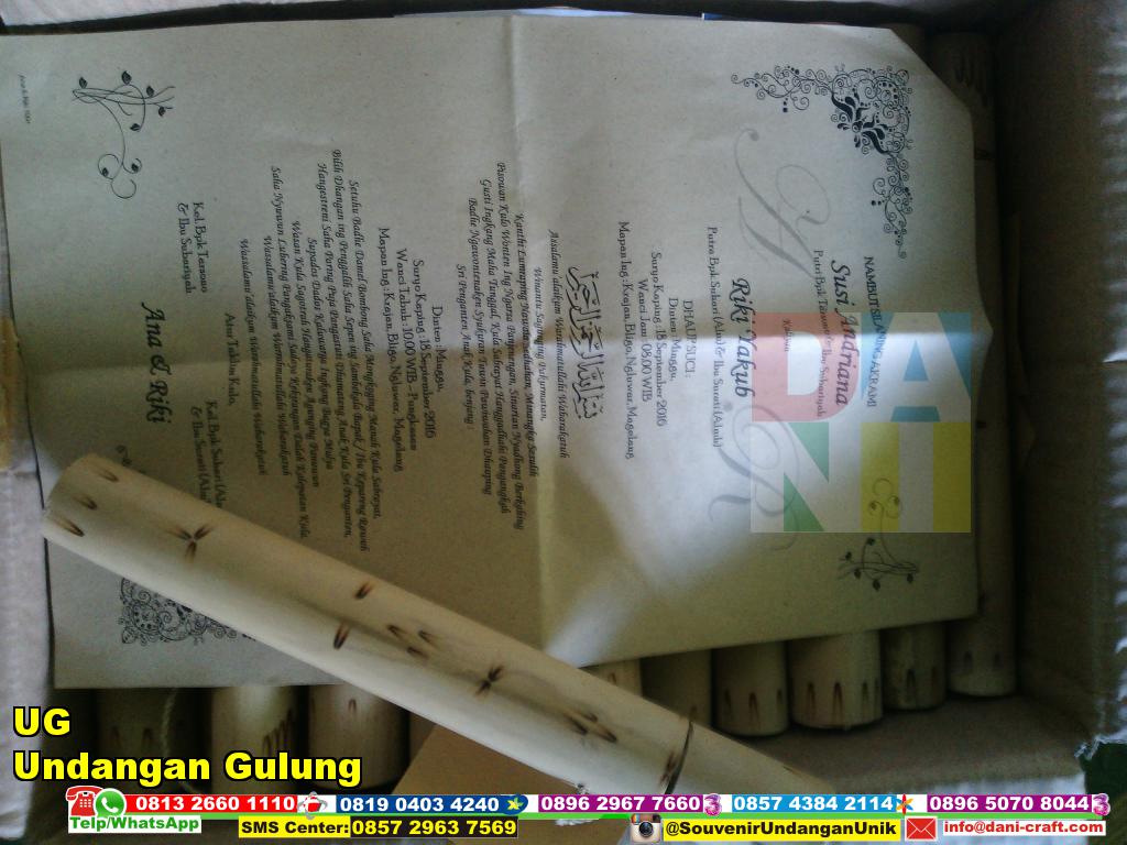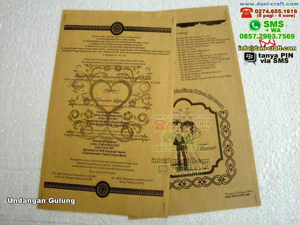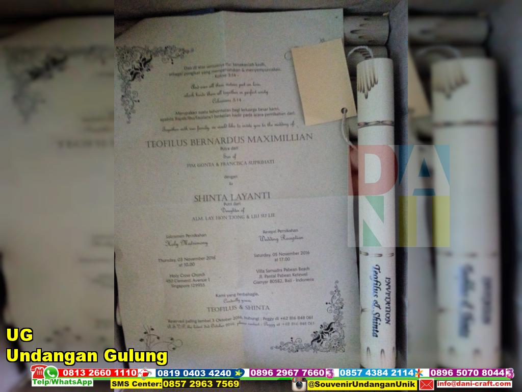 Undangan Gulung adalah salah satu undangan pernikahan yang di produksi oleh DANI-CRAFT. Undangan pernikahan ini sangat unik. Jika anda perhatikan secara sepintas, undangan pernikahan ini akan terlihat seperti undangan pernikahan dari raja-raja jaman dahulu.