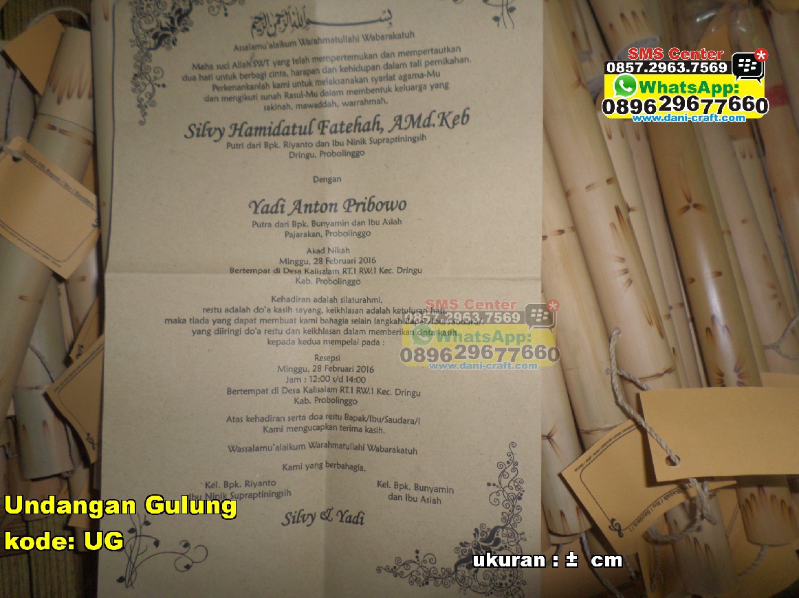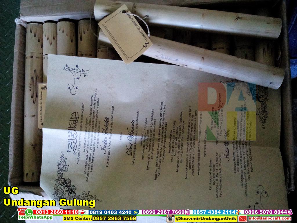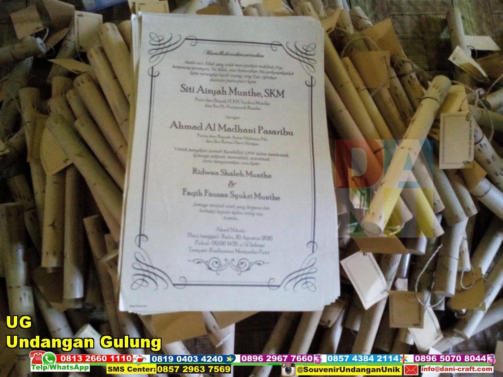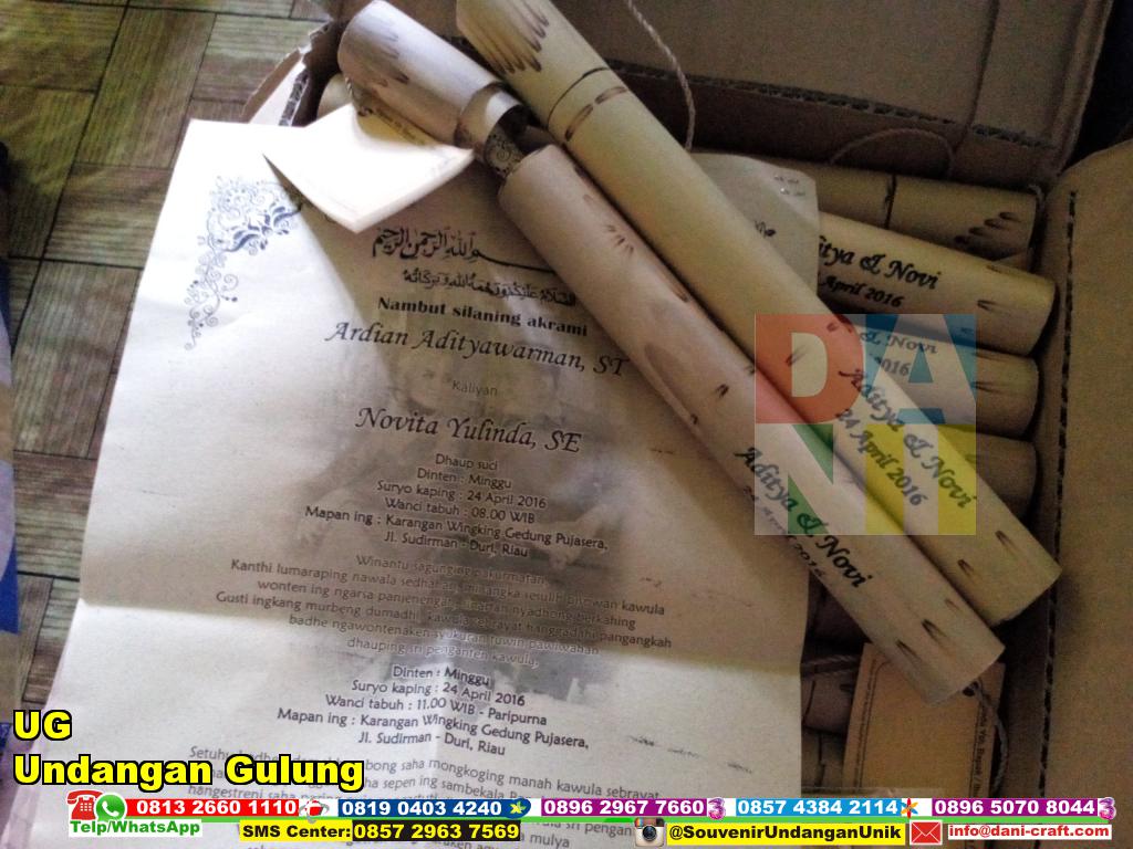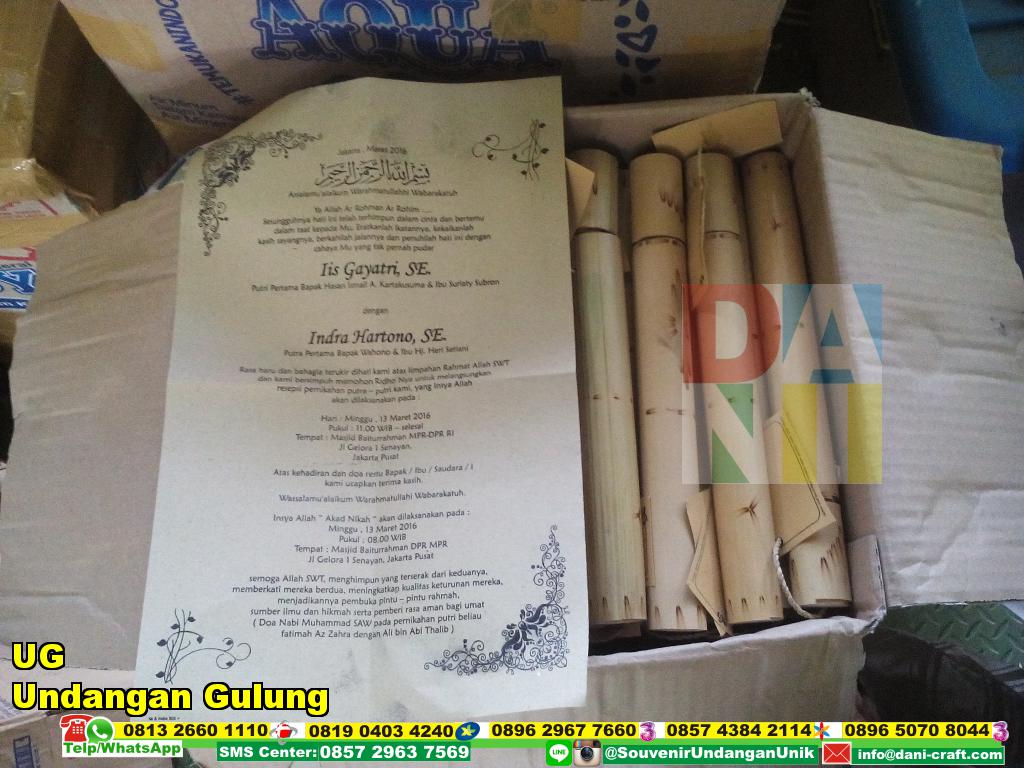 Undangan Gulung adalah salah satu undangan pernikahan yang di produksi oleh DANI-CRAFT. Undangan pernikahan ini sangat unik. Jika anda perhatikan secara sepintas, undangan pernikahan ini akan terlihat seperti undangan pernikahan dari raja-raja jaman dahulu.